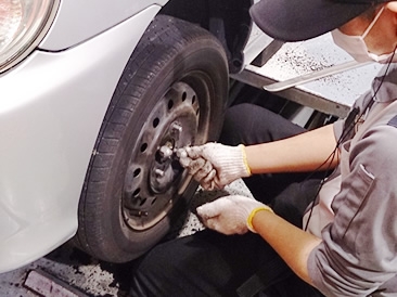 当店の国家整備士より、タイヤの交換作業をさせて頂きます。 |