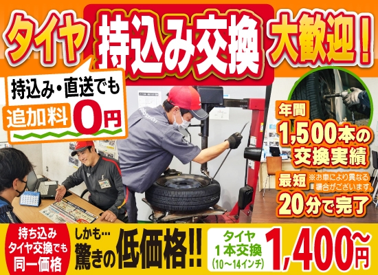 (当店でタイヤを購入のお客様、新品タイヤを持ち込み交換のお客様に限ります。)